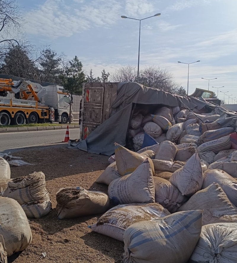 Diyarbakır’ın Silvan ilçesinde sürücüsünün kontrolünü yitirdiği saman yüklü kamyon, yol kenarında park halinde bulunan araçların üzerine devrildi.