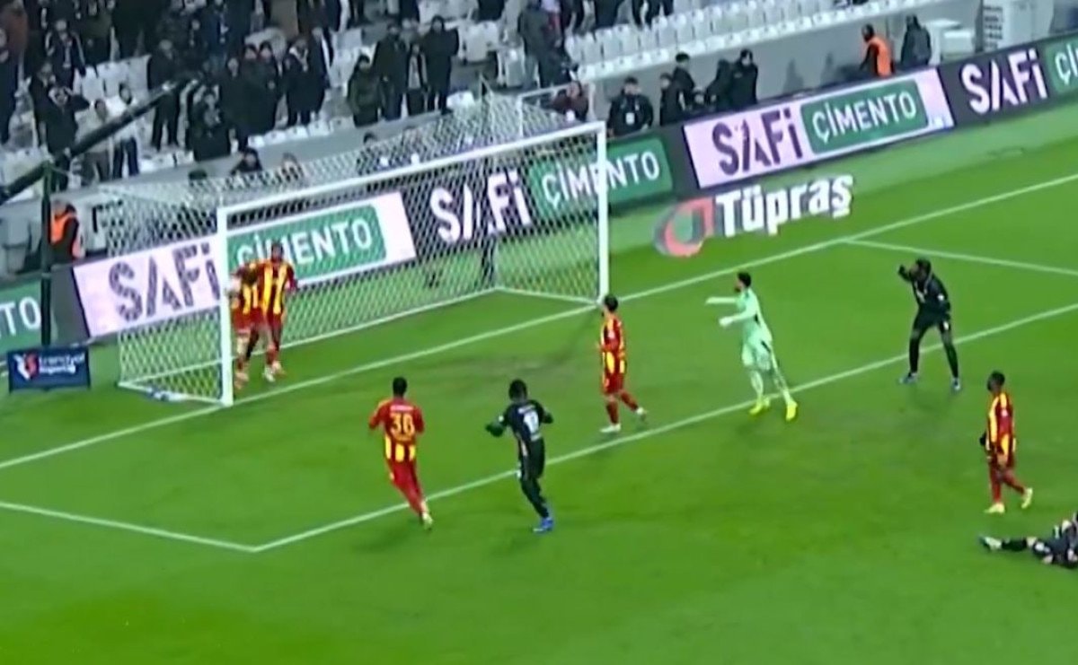 Orkun Kökçü’nün ceza sahası içinden yaptığı sert vuruşta top, Kayserisporlu Youssef Bennasser’e çarptı.