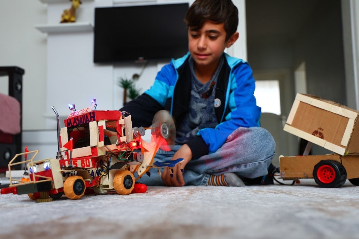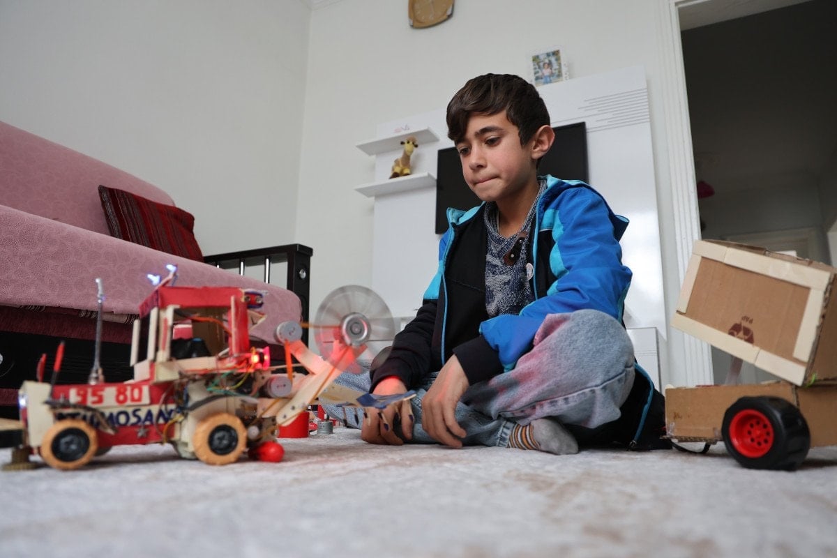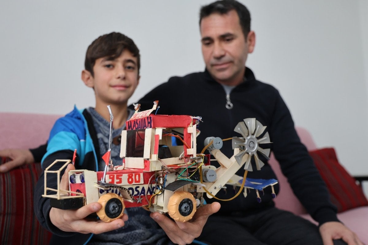 Atık malzeme ve bozuk oyuncakların içinden çıkanlarla bu traktörü yaptım. Adım, Selçuk. Selçuk Bayraktar’ı izliyorum, takip ediyorum. İnşallah, büyüdüğümde daha büyük icatlar yapabilirim. En büyük amacım, bir gün Selçuk Bayraktar’ın yanına gitmek” dedi.