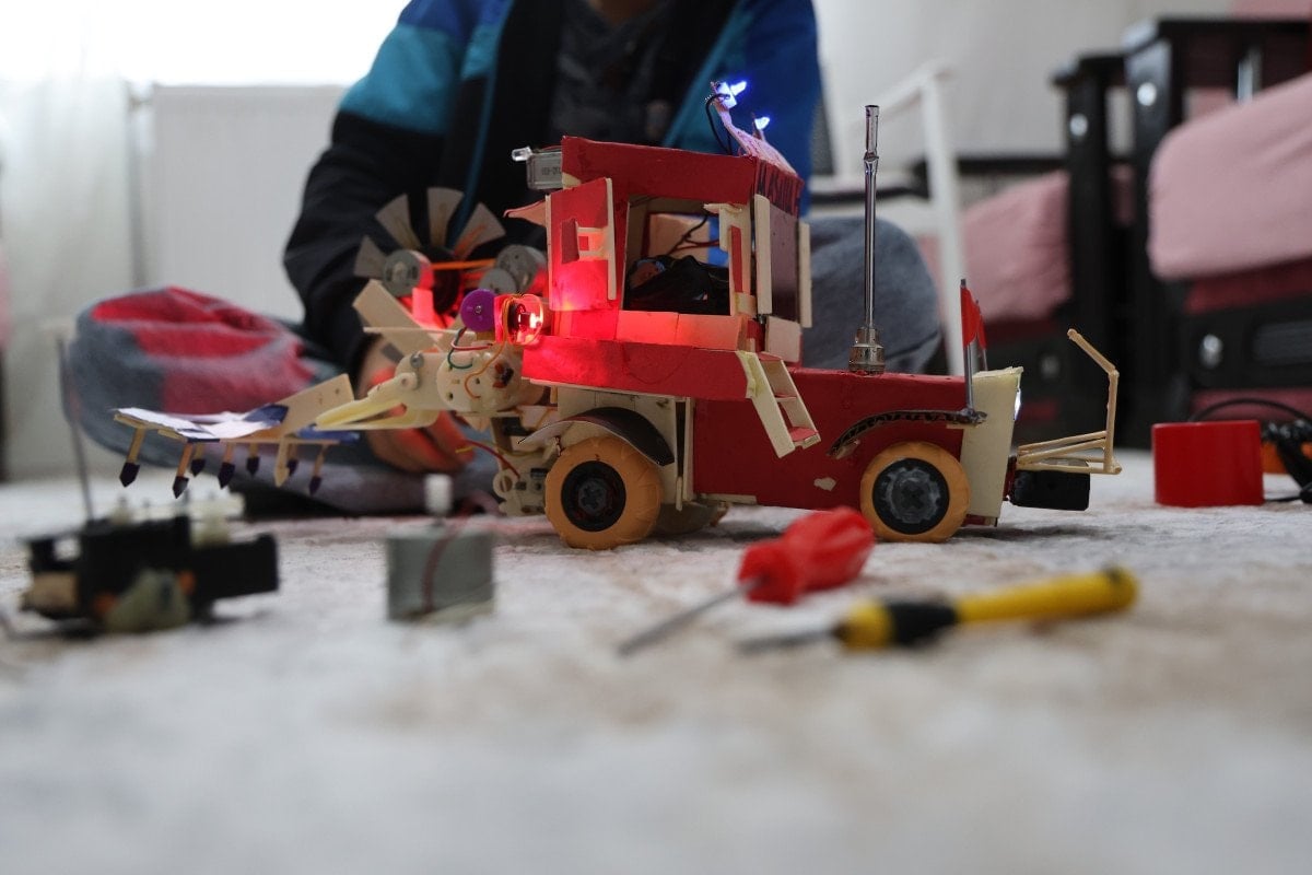 Traktör maketini yaparken kullanılmayan oyuncak bebek parçaları, çeşitli atık malzemeler ve kendi harçlıklarıyla satın aldığı basit ekipmanlardan faydalanan Selçuk, yaklaşık 4 ay boyunca titizlikle çalıştı.