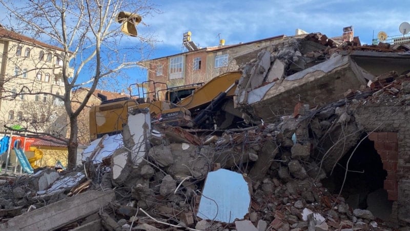 Elazığ’da yıkım sırasında enkaz, iş makinesinin üzerine çöktü