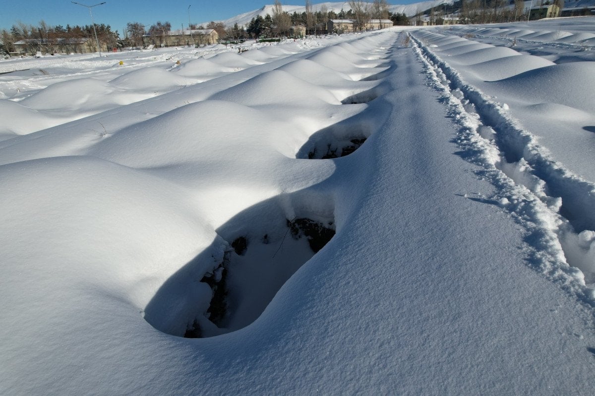 Hava sıcaklığının zaman zaman sıfırın altında 30 dereceye kadar düştüğü Erzurum’da yüzlerce mezar yeri kış için hazır edildi.