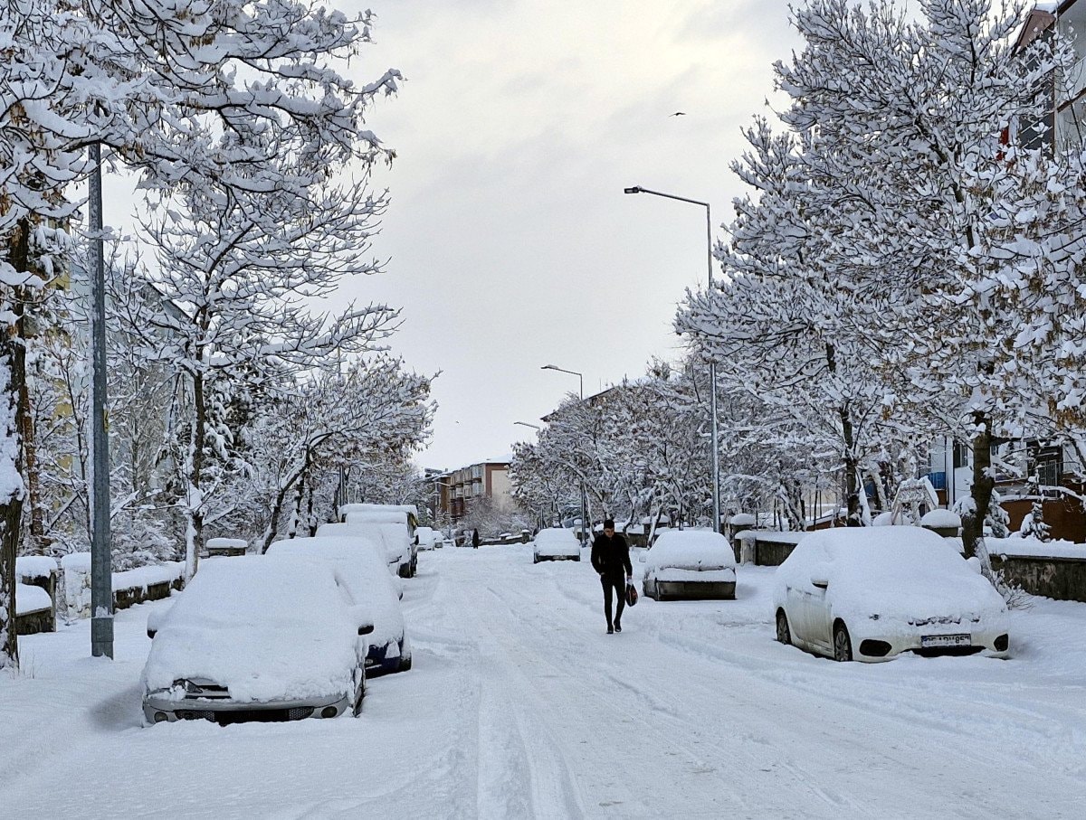 Park halindeki araçların karla kaplandığı kentte, belediye ekipleri temizlik çalışması başlattı. Kar yağışı kırsalda da etkili oldu.