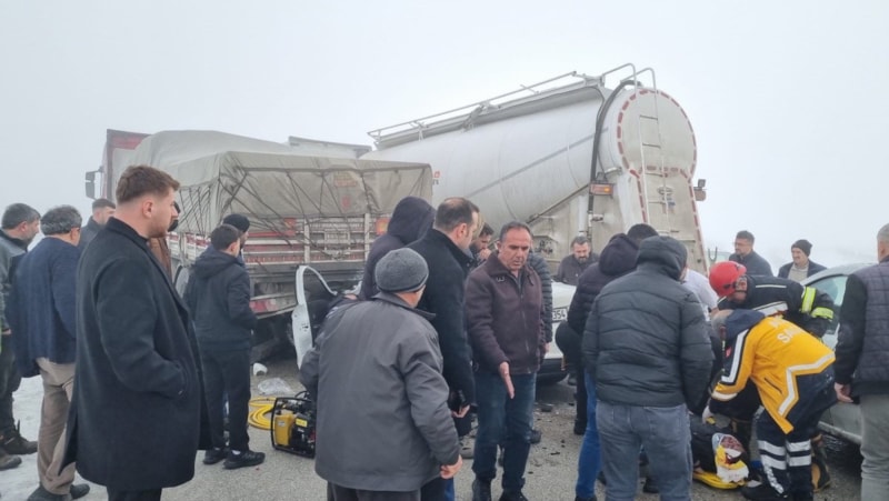 Aşkale ilçesinde, sabah saatlerinde etkisini artıran yoğun sis nedeniyle görüş mesafesinin düşmesiyle Gökçebük köyü yol ayrımında hafif ticari araçlar ve tırların da karıştığı zincirleme kaza meydana geldi.