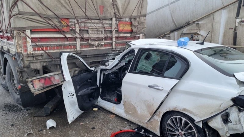 Kaza nedeniyle yol bir süre kontrollü olarak trafiğe kapatıldı.