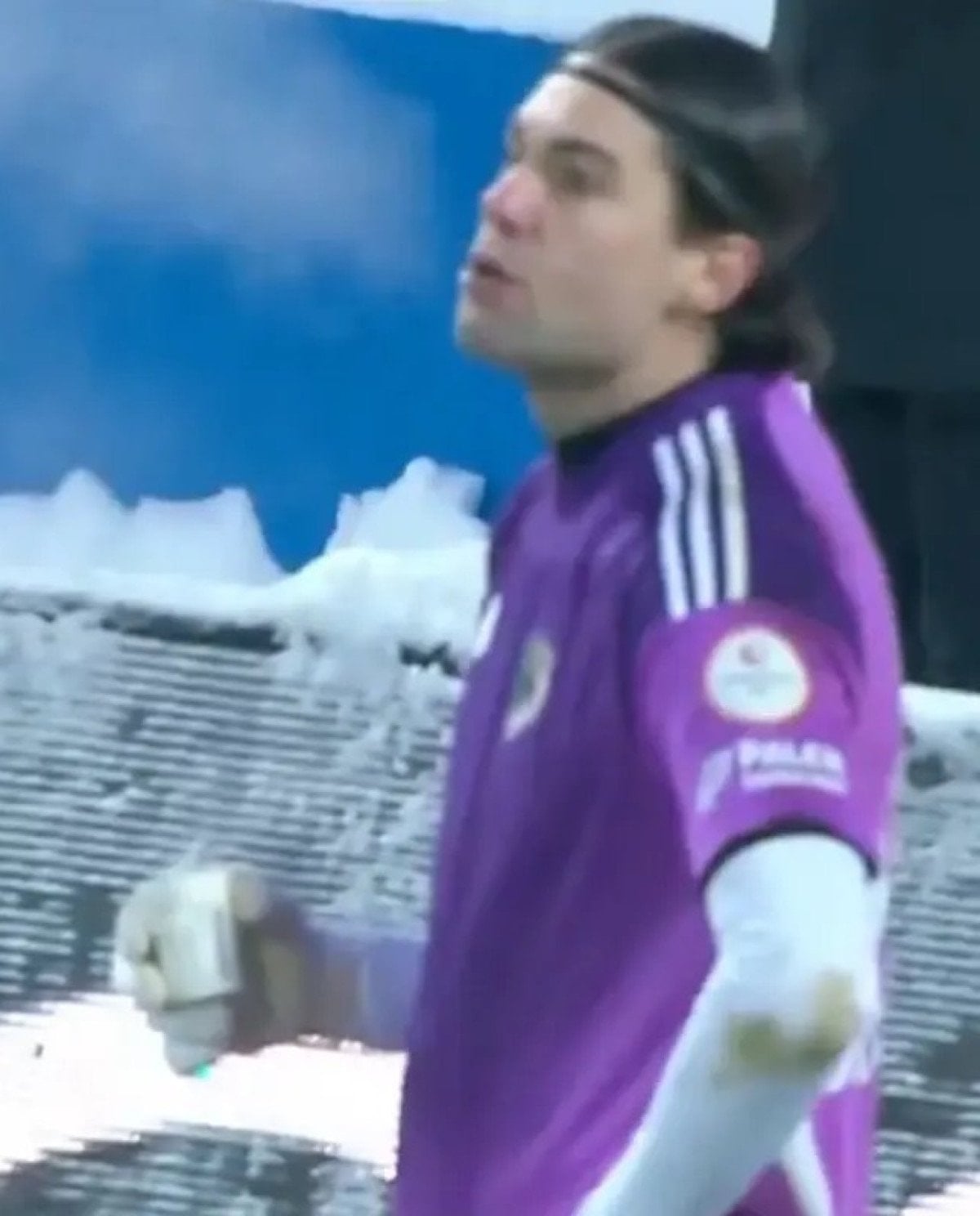 Ekranlara yansıyan bu görüntülerde deneyimli kalecinin soğuğa karşı çaresizliği göze çarptı.