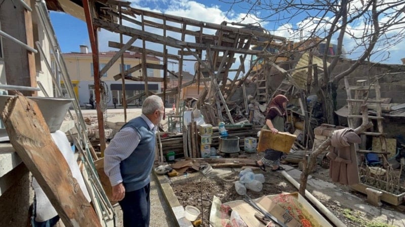 Onun üstüne şimdi tahtalar düştü. Eşyalarım tahtaların altında şimdi bilemiyoruz durumlarını. Sonra burada belediye suyu kesmemiş. Benim bodrumuma su doldu. Hanım sabahtan beri kovayla su taşıdı. Yani kasıt yok, ama suyu bari kesebilirlerdi. Hanım da 75-74 yaşında.