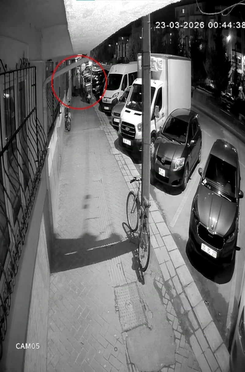 Öte yandan şüphelilerin park halindeki araçlardan birini iterek çaldığı anlar, çevredeki bir binanın güvenlik kamerasına yansıdı.