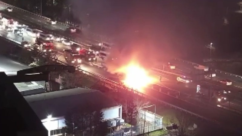 Aracın alev alev yandığı anlar, çevredeki kameralar tarafından kaydedildi.