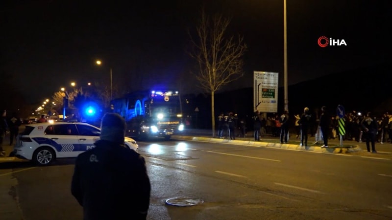 Yoğun güvenlik önlemleri altında takım otobüsü tesislere girerken, taraftarlar, “Yönetim istifa” sloganları attı.