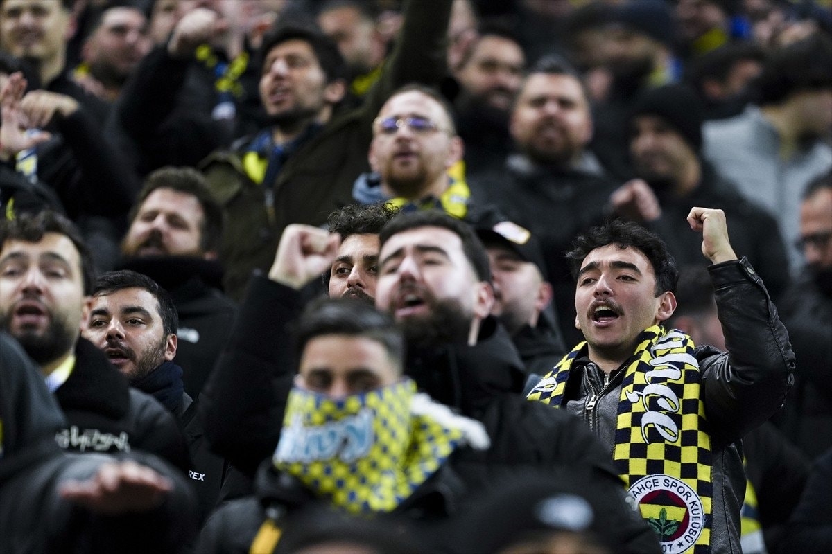 Kendilerine ayrılan bölgeyi dolduran Fenerbahçeliler, maçtan önce futbolcuları tek tek tribünlere çağırarak destek verdi.