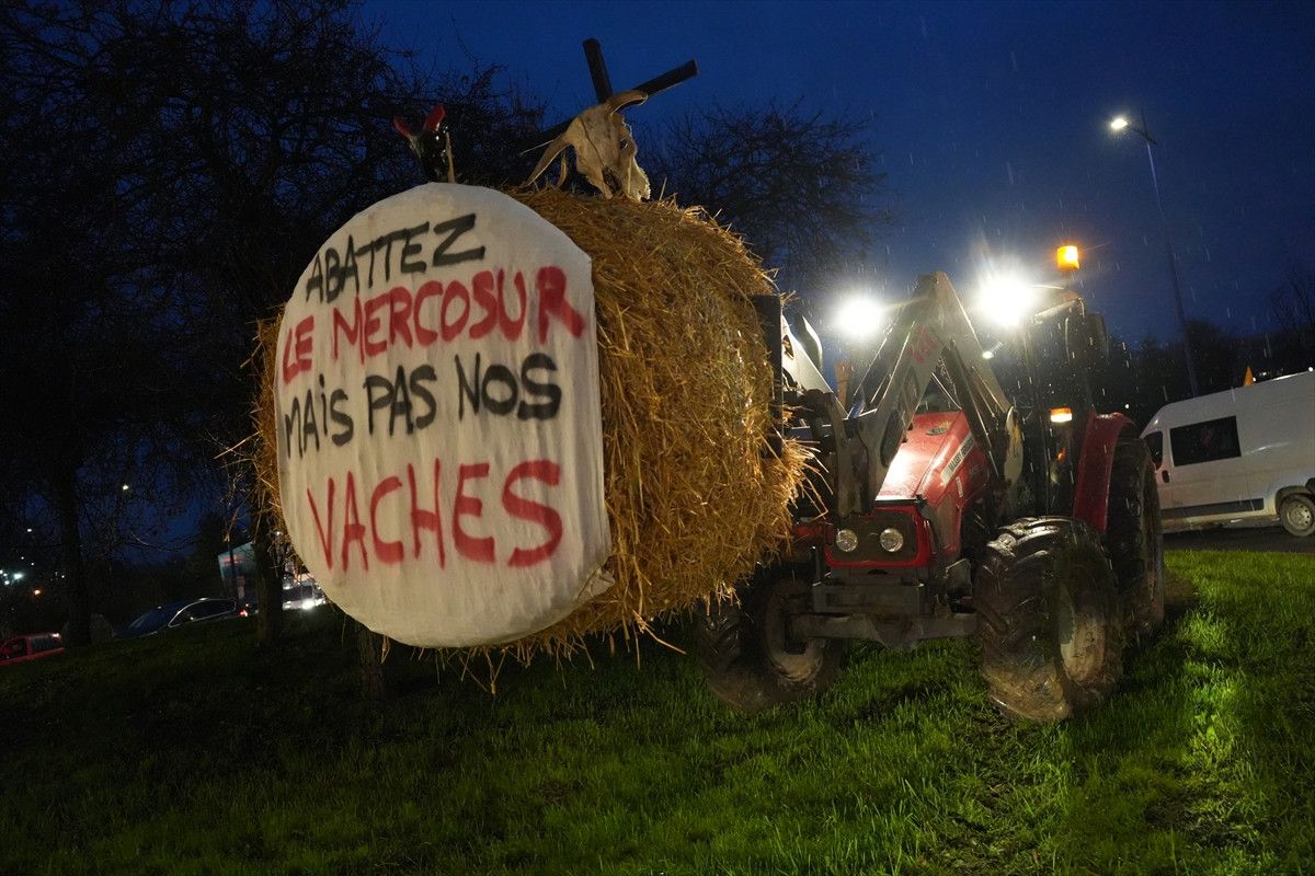Fransa’nın Saone-et-Loire vilayetine bağlı Macon kentinde çiftçiler, ülke genelinde süren tarım protestoları kapsamında ana ulaşım güzergâhlarında eylem yaptı. Göstericiler, traktörlerle ve çeşitli araçlarla ulusal yolu kapatarak çift yönlü trafiği durdurdu.