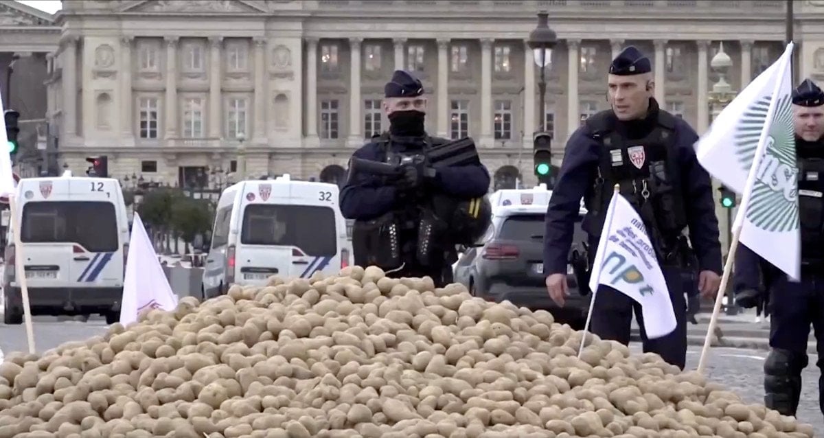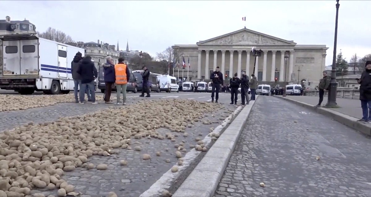 Fransa’daki Patates Üreticileri Ulusal Birliği’nden (UNPT) yapılan açıklamada, Ulusal Meclis’in karşısındaki Concorde Köprüsü’nün önünde patates dağıtıldığı belirtildi.