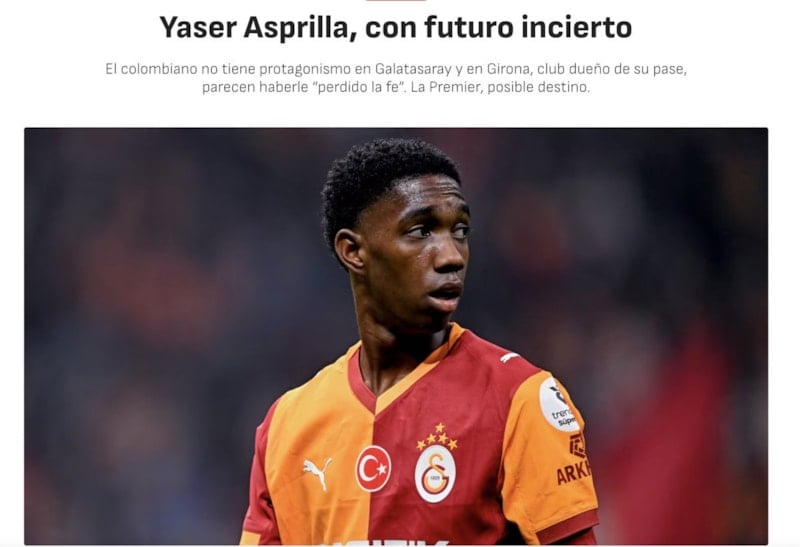 Habere göre, Girona’da beklentilerin altında kalan Asprilla Galatasaray’da da ilk 11 oyuncusu olamayacak.