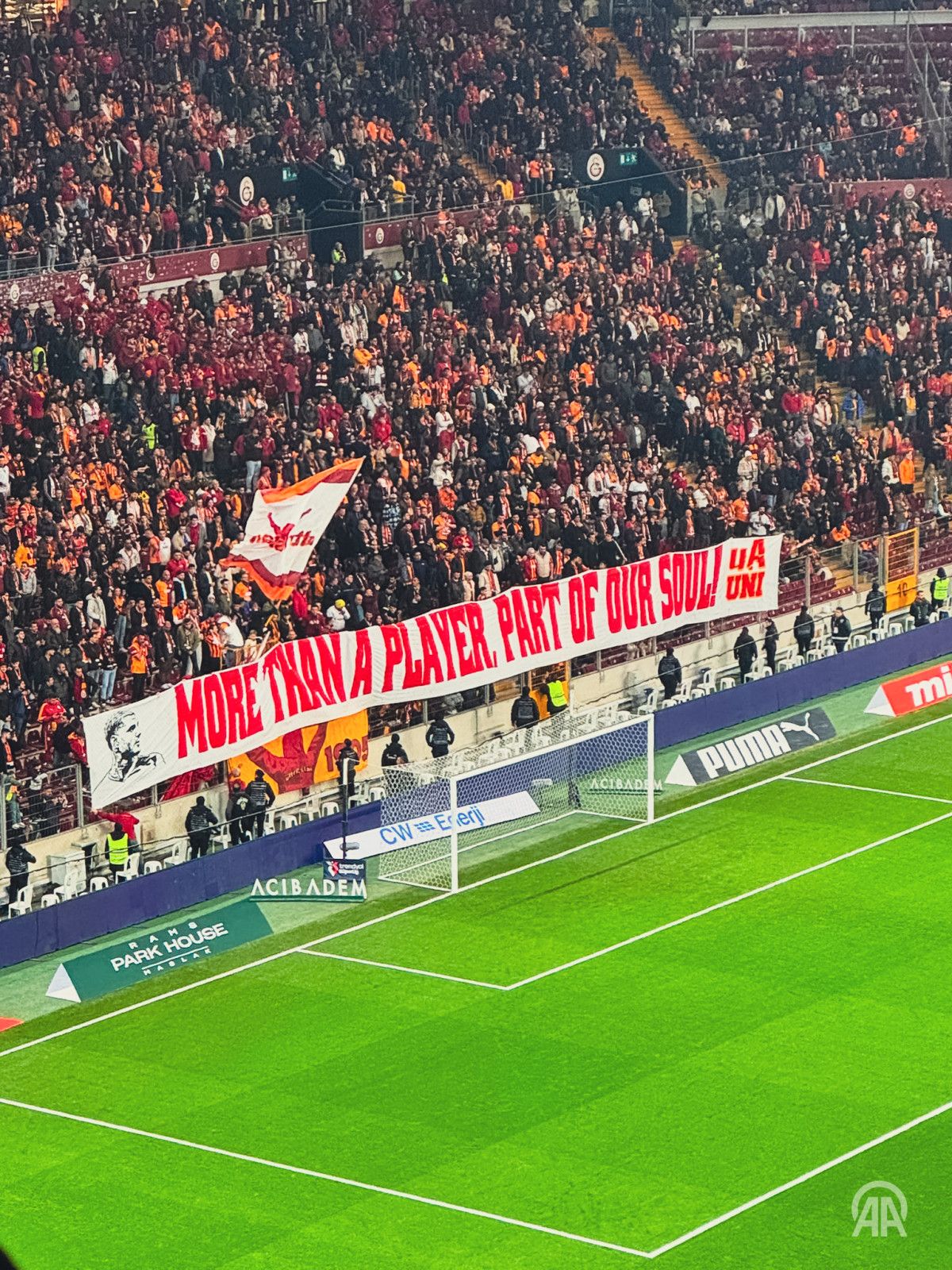 Galatasaraylı taraftarlar ayrıca Mauro Icardi için, “Bir oyuncudan daha fazlası, ruhumuzun parçası” pankartı da açtı.