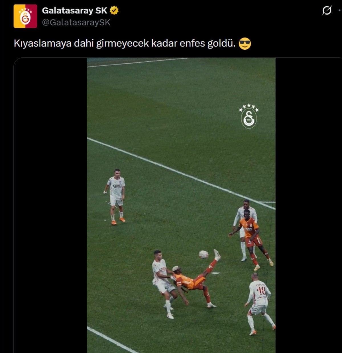 Galatasaray, gönderinin altına “Kıyaslamaya dahi girmeyecek kadar enfes goldü” notunu düştü.
