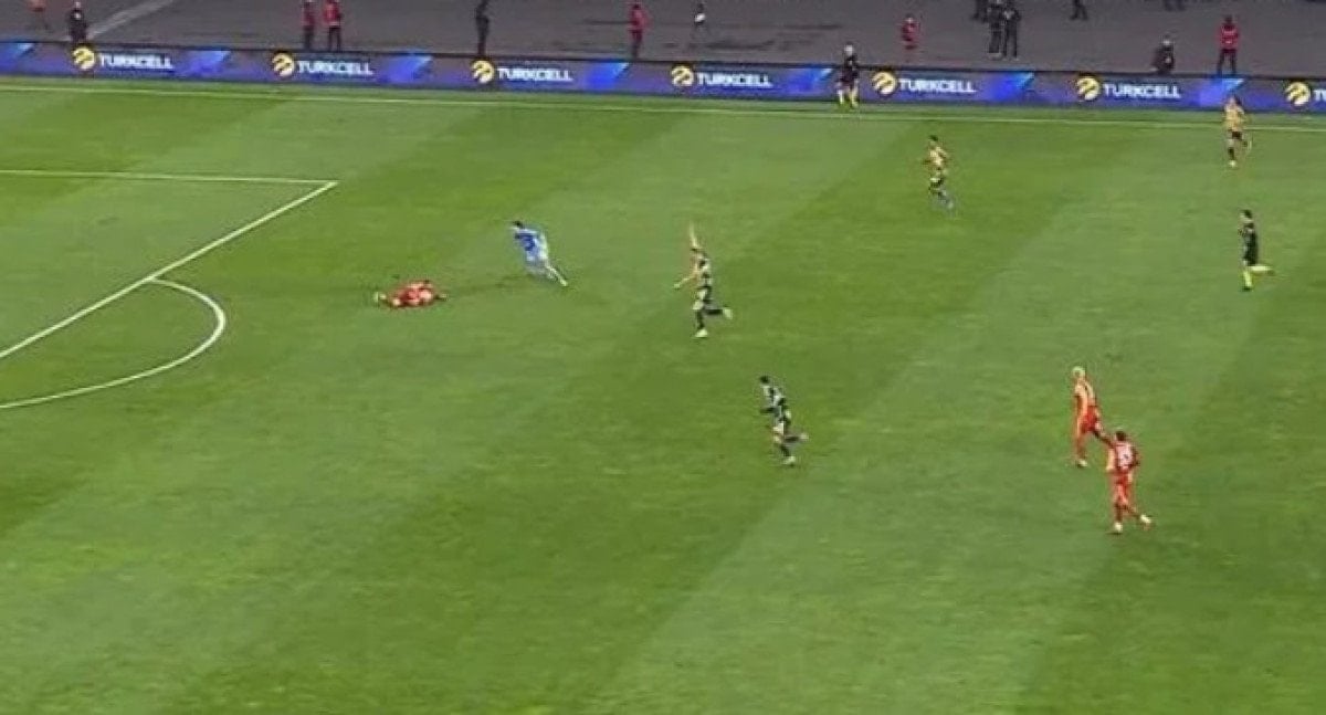 Hakem Halil Umut Meler, topun Yunus’un eline çarptığını işaret etti ve golü iptal etti.