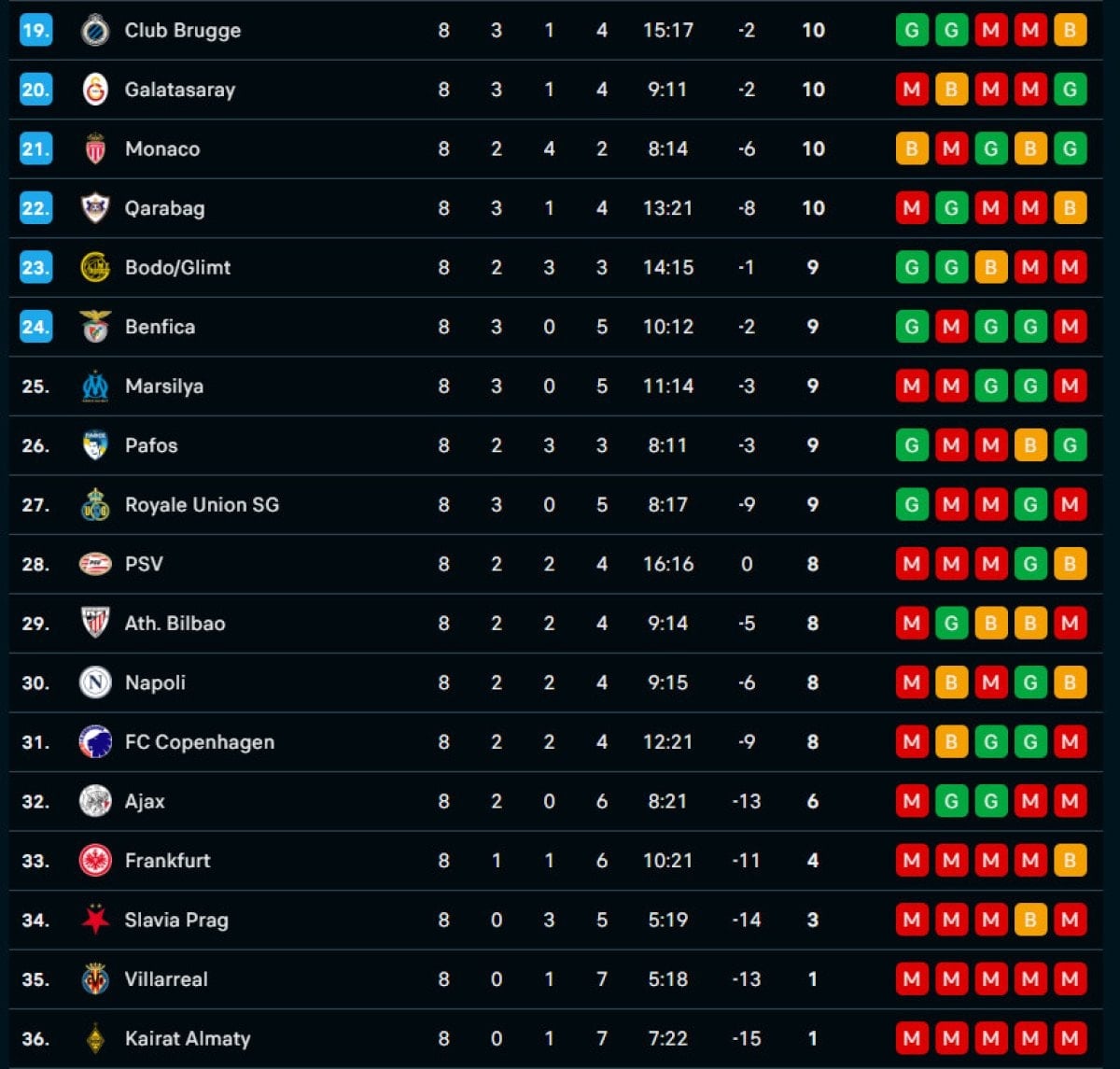 UEFA ŞAMPİYONLAR LİGİ’NDE PUAN DURUMU