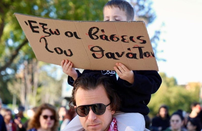 Başkent Lefkoşa’da düzenlenen gösterilerde protestocular, Rum yönetimini ABD ve İsrail’e destek vermekle suçlayarak idari binalara yürüdü.