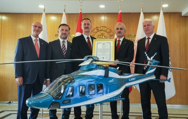 Ulaştırma ve Altyapı Bakanı Abdulkadir Uraloğlu, Gökbey Helikopteri’nin Hava Aracı, Motor veya Pervane Tasarımının ve Performansının Uçuşa Elverişlilik Sertifikasını, Savunma Sanayii Başkanı Haluk Görgün’e düzenlenen törenle takdim etti.