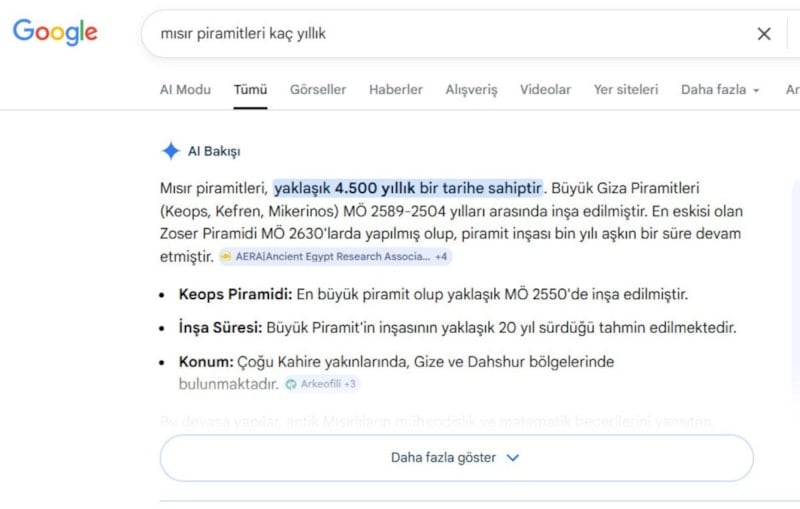 Zamanı kısıtlı olan kullanıcılar için geliştirilen AI Bakışı özelliği ise sorgularla ilgili temel bilgileri ve kaynak bağlantılarını doğrudan sonuç sayfasının en üstünde sunuyor.
