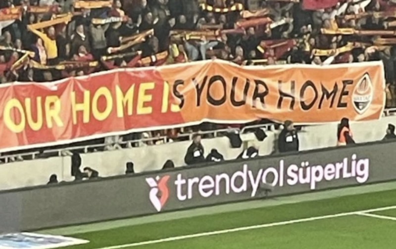 Seremoni sırasında tribünlerde açılan “Our Home Is Your Home” pankartıyla Ukrayna temsilcisi Shakhtar Donetsk’in teknik direktörü Arda Turan’a açık bir çağrı yapıldı.