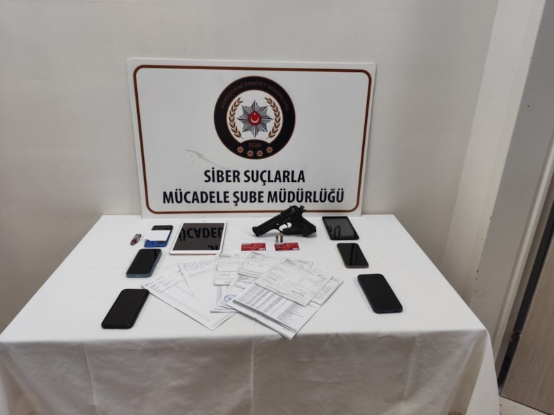 Operasyon kapsamında yapılan aramalarda 1 adet ruhsatsız silah, çok sayıda elektronik materyal, banka kartları ve çeşitli makbuzlar ele geçirildi.
