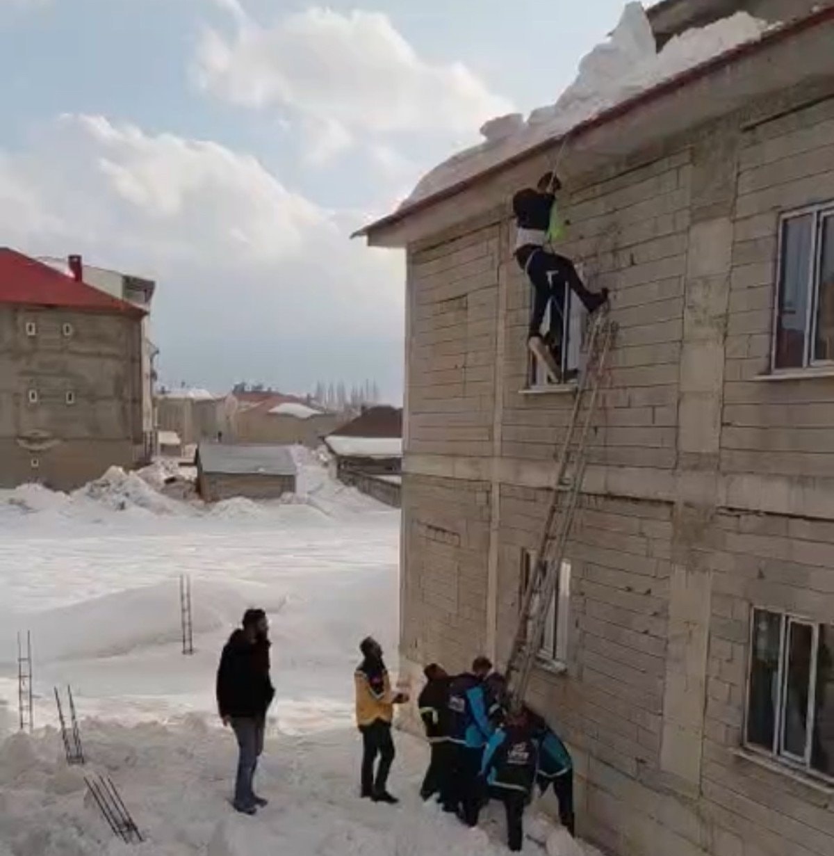Hakkari’de çatıda asılı kalan vatandaş kurtarıldı
