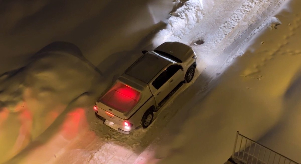 İlçenin Esentepe Mahallesi ile Pizok TOKİ konutları 1. etap arasındaki güzergahta seyreden bir araçlar, yoğun kar birikintisi nedeniyle yolda kaldı.