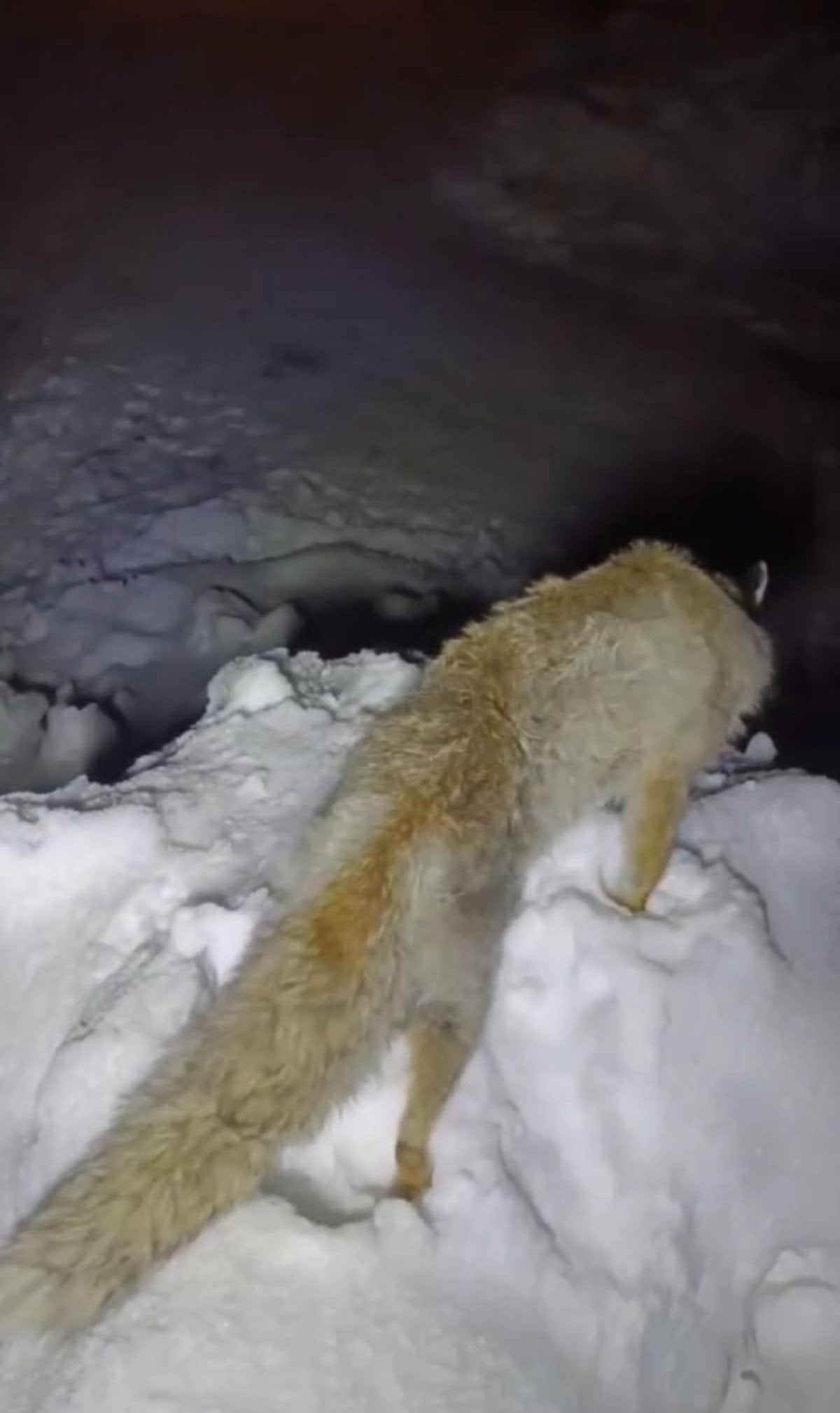 Bölgedeki zorlu kış mevsimine dikkat çeken mahalle muhtarı Arif Genç, “Kar kütlesinin üzerinde bir tilkinin hiç hareket etmeden durduğunu gördük.