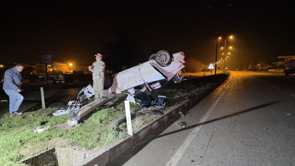 Gaziantep – Hatay yolu Hassa ilçesi Aktepe Mahallesi’nde sürücüsünün direksiyon hakimiyetini kaybettiği Ö.Ü. idaresindeki otomobil, aydınlatma direğine çarparak takla attı.
