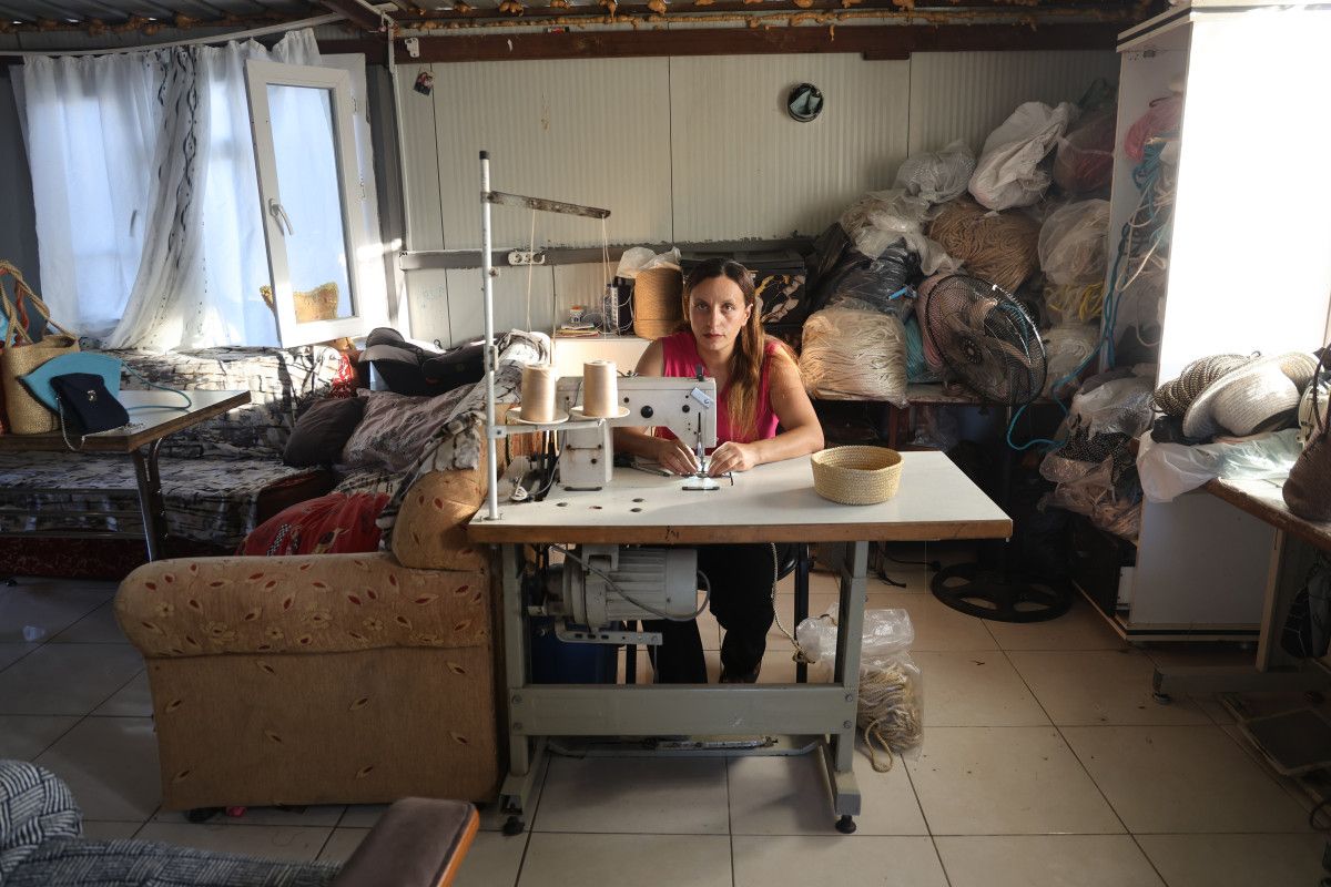 Dikiş makinesiyle halatlardan el ürünü yapan Hüzmeli, 100 ila 300 TL arasında satıyor. Hüzmeli’nin ailesiyle birlikte yaşadığı konteyner, hem evi hem de işyeri oldu.
