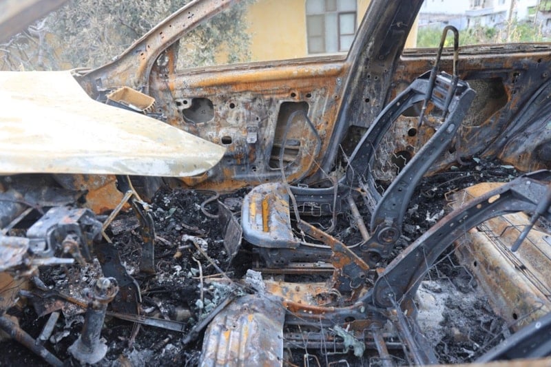 Görüntülerde, kimliği belirlenemeyen bir kişi zeytin bahçesinden elinde benzin bidonuyla otomobile yaklaşıyor, ön camı kırarak cüzdan ve ruhsat gibi evrakları alıyor ve aracı ateşe veriyor. Kundaklama sırasında şahıs da alevlerin arasında kalıyor ve zeytin bahçesine kaçarak olay yerinden uzaklaşıyor.