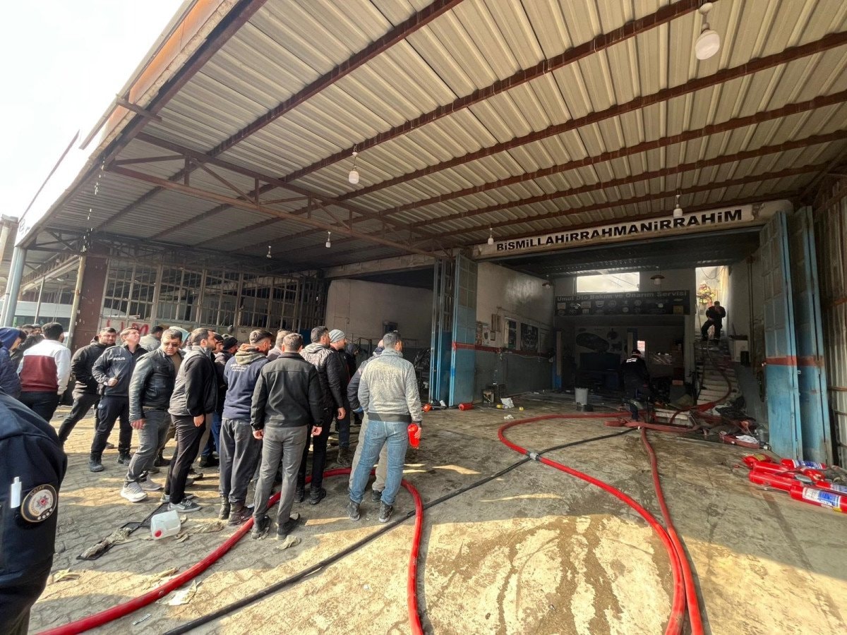 Hatay Güzelburç Mahallesi’nde bulunan sanayi sitesindeki tamir atölyesi alevlere teslim oldu.