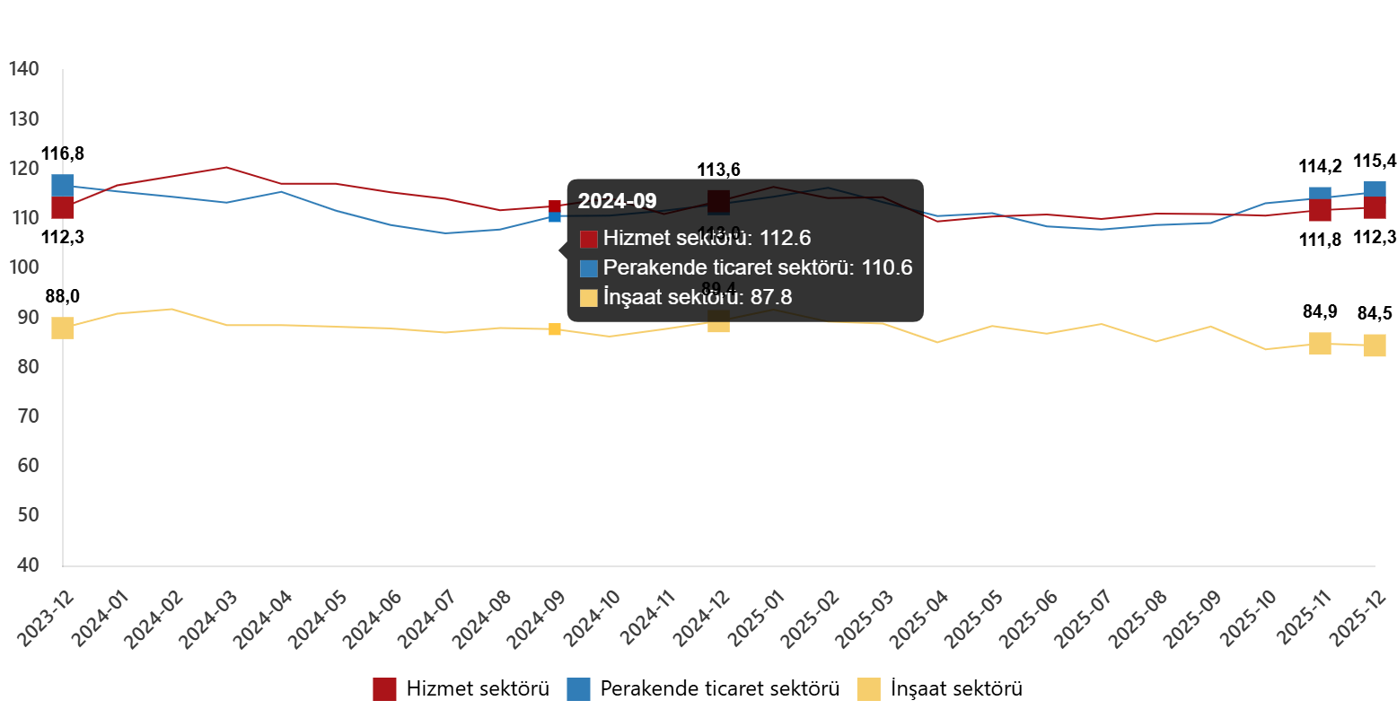 Hizmet, Perakende Ticaret ve İnşaat Güven Endeksleri, Aralık 2025