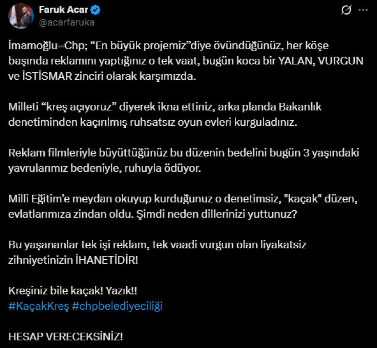 İBB’ye ait kreşteki darp ve istismar skandalına Faruk Acar’dan tepki: Hesap vereceksiniz