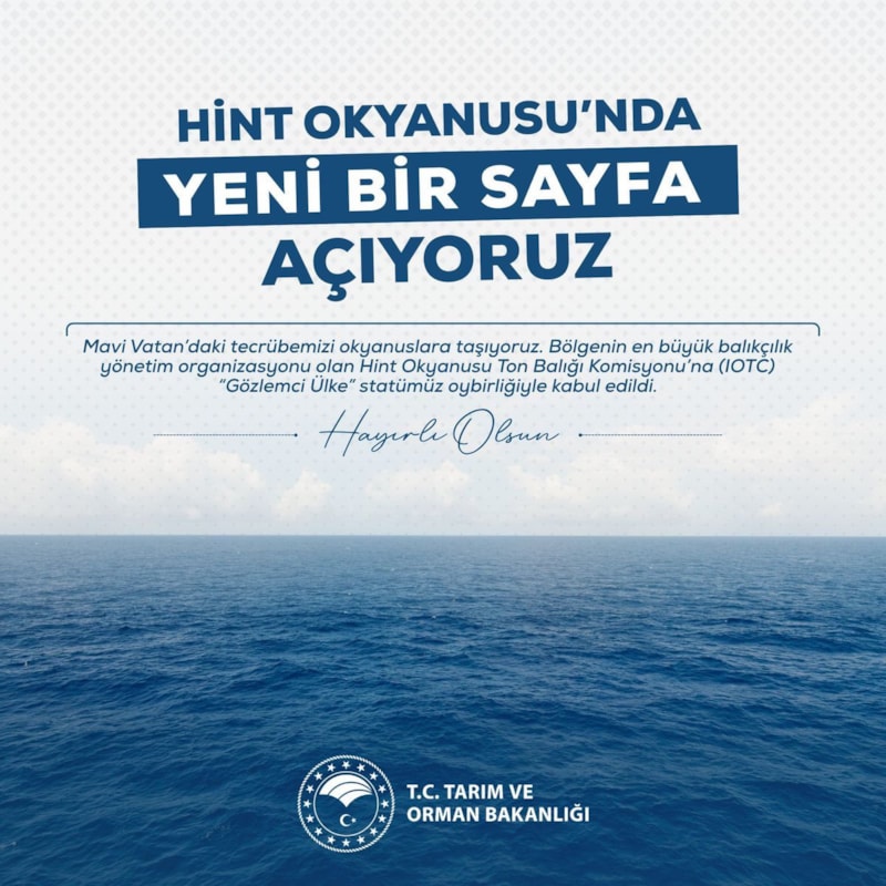 Dünyanın en önemli bölgesel balıkçılık yönetim organizasyonlarından biri olan Hint Okyanusu Ton Balığı Komisyonu (IOTC) nezdinde “Gözlemci Ülke” statümüz oy birliğiyle kabul edildi.