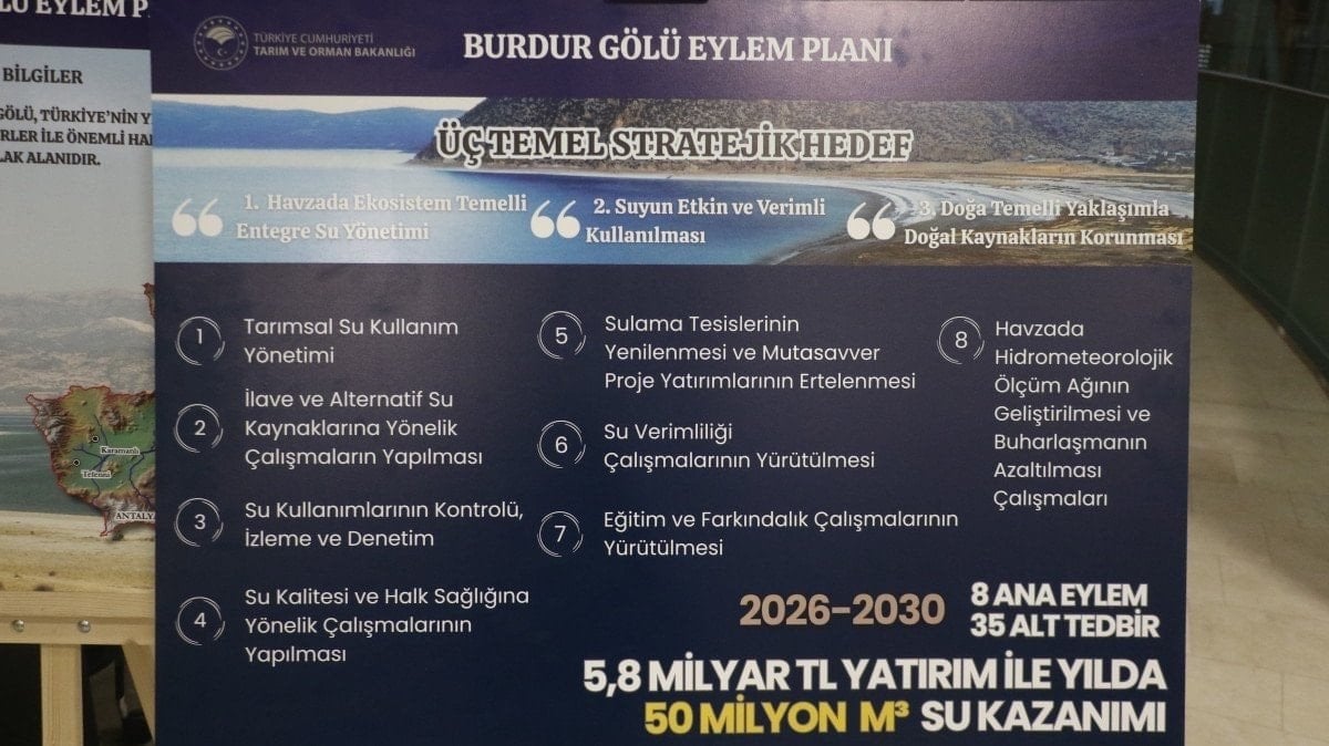 Türkiye’deki birçok gölün kurumaya yüz tuttuğunu ve kuraklığın önümüzdeki yıllarda daha da belirginleşeceğinin altını çizen Bakan Yumaklı, “İklim değişikliğinin ülkemiz açısından en görünümlü taraflarından birisi de göllerin kurumasıydı. Özellikle göllerimizin büyük bölümünde buharlaşmanın etkisiyle su kaybı mevcut. Eğirdir Gölündeki buharlaşma kaybı yüzde 79, Burdur Gölündeki buharlaşma kaybı yüzde 78’dir. Bu çerçevede göllerimiz için hazırlamış olduğumuz eylem planlarının hızlıca hayata geçirilmesini arz ediyoruz. Sırada diğer göllerimiz var. Bu çerçevede her bir gölün ekolojik özellikleri, kullanım amaçları ve gelinen listeler doğrultusunda tehdit ediliyor.” ifadelerine yer verdi.