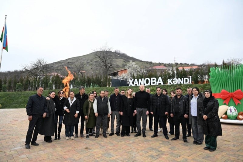 Hanoba köyünde bölgeye geri dönen vatandaşlarla bir araya gelen Aliyev, yurttaşların Nevruz Bayramı’nı kutladı.