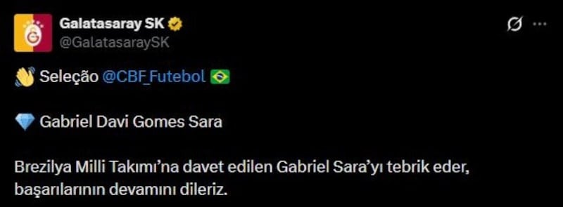 Galatasaray Kulübü, milli takıma davet edilen oyuncusu için resmi bir tebrik mesajı yayımladı. Sarı-kırmızılı kulübün açıklamasında şu ifadeler yer aldı: