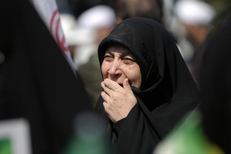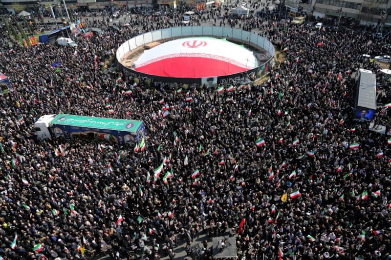 Cenazeye katılan kalabalık, sık sık ABD ve İsrail karşıtı sloganlar attı.