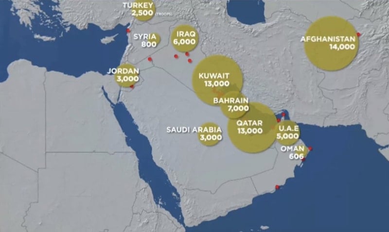 ABD’nin bölgede en az 19 üssü ve yaklaşık 40 bin askeri bulunuyor.