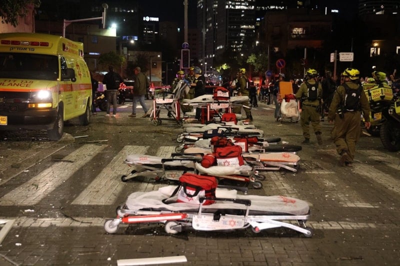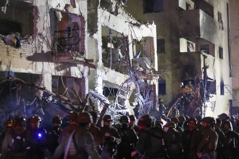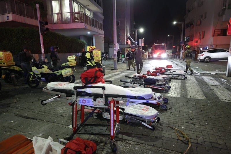 ABD ve İsrail’in ortak saldırısının ardından İran’ın misilleme olarak gerçekleştirdiği saldırıda, Büyük Tel Aviv olarak bilinen Gush Dan bölgesindeki iki binaya doğrudan isabet eden füze çevredeki bina ve araçlarda ağır hasara yol açtı.