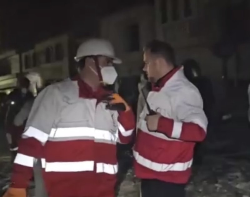 Paylaşılan görüntülerde bir binanın ciddi şekilde hasar aldığı ve ekiplerin arama kurtarma çalışması yürüttüğü görüldü.