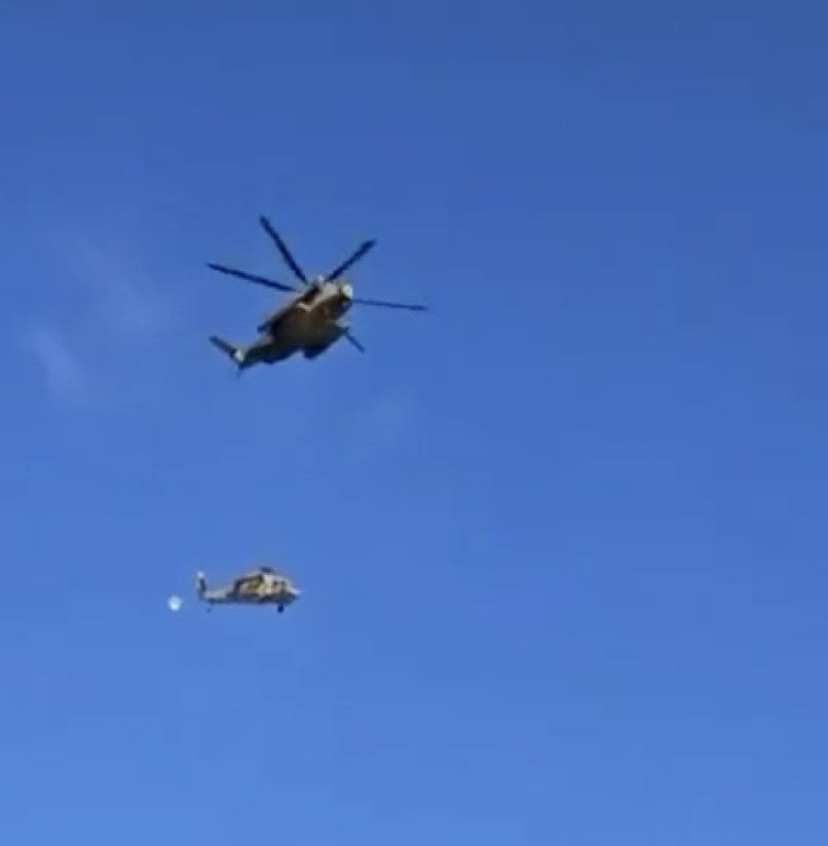 Bu sabah başka bir helikopterle gerçekleştirilen kurtarma operasyonu sırasında, taşınan helikopterin halatın kopması sonucu düştüğü ifade edildi.