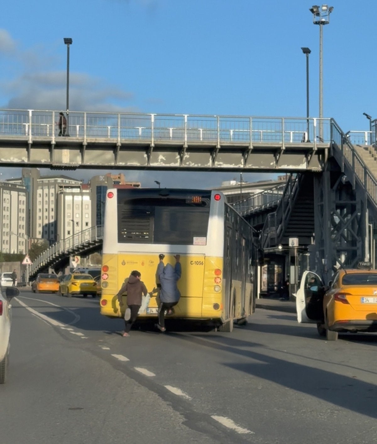 İstanbul Beykoz’da otobüsün arkasında tehlikeli yolculuk
