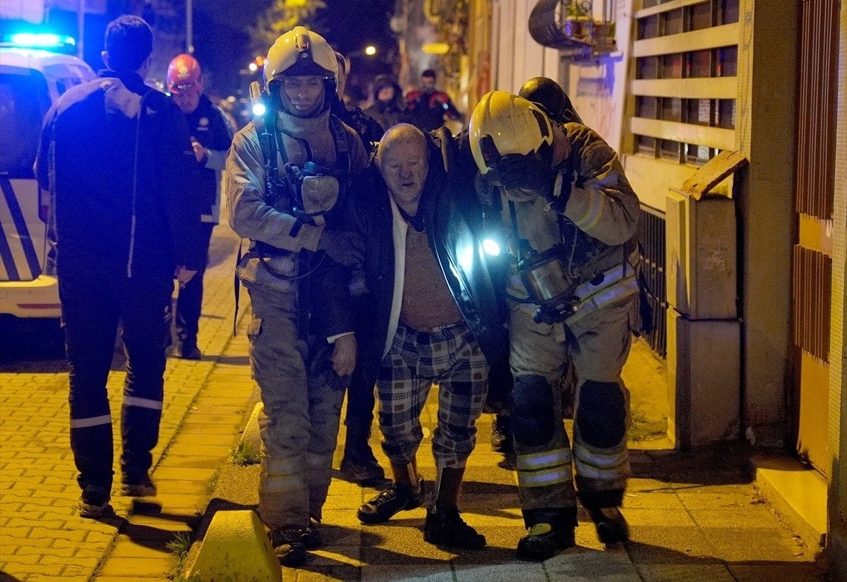 Yangının çıktığı dairede 2 kızıyla mahsur kalan ve yürüme güçlüğü çeken yaşlı bir kişi itfaiye ekiplerince dışarı çıkarıldı.