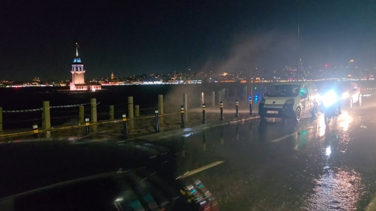 İstanbul Büyükşehir Belediyesi Afet Koordinasyon Merkezi’nin fırtına uyarısının ardından Salacak Sahili’nde dalga boyu yükselirken zaman zaman dalgaların kıyıya vurduğu görüldü.