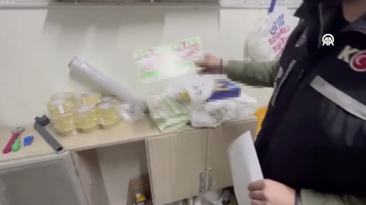 Polis 8 adrese düzenlediği eş zamanlı operasyonda 16 şüpheliyi gözaltına aldı. Aramalarda 1,5 ton sahte alkol ele geçirildi.