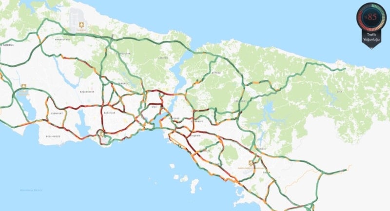İstanbul Büyükşehir Belediyesi Cep Trafik Haritası verilerine göre, haftanın üçüncü iş günü akşam saatlerinde kent genelinde trafik yoğunluğu yüzde 85’e ulaştı.